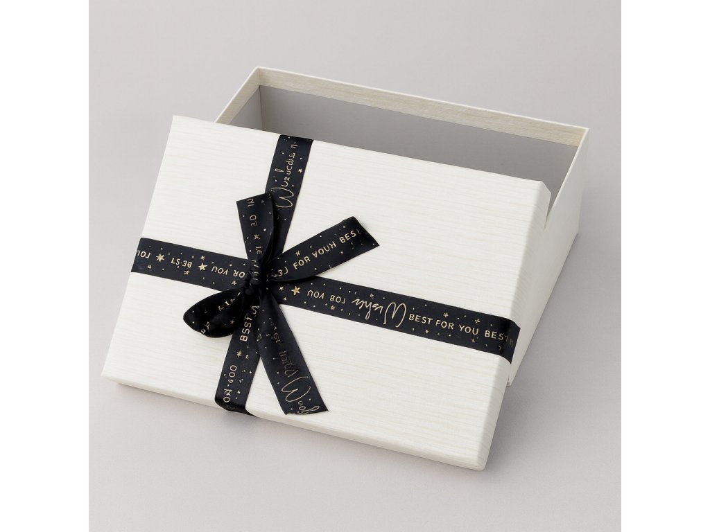 Dárková krabice bílá s černou stuhou „Best Wishes“