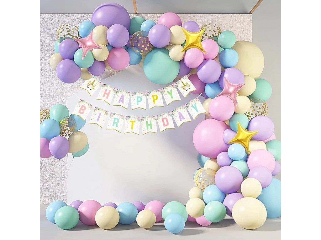 Nafukovací pastelové balónky s hvězdami – vícebarevná girlanda (151 ks)