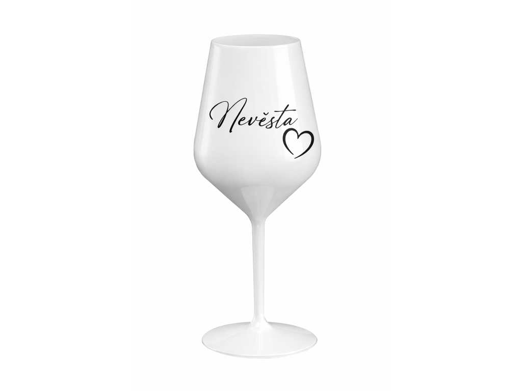 Elegantní sklenice na víno s nápisem Nevěsta je ideálním doplňkem na rozlučku se svobodou, svatební den nebo jako krásný dárek pro budoucí nevěstu. Minimalistický design doplněný o jemné srdíčko působí moderně, stylově a dokonale ladí s každou svatební výzdobou.