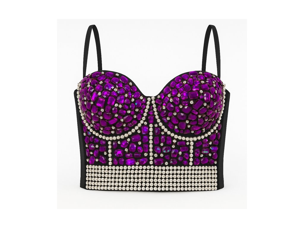 Party podprsenka s fialovými kameny – luxusní kousek pro večírky